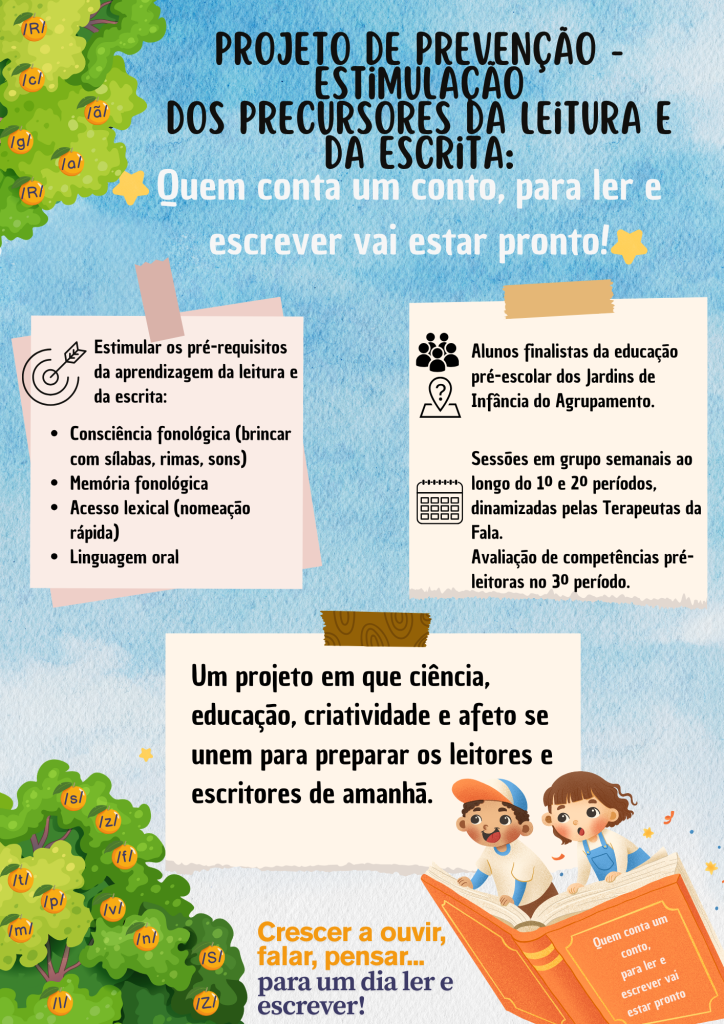 Projeto de caráter preventivo dirigido ao pré-escolar e 1.º ciclo do ensino básico, orientado para a promoção do desenvolvimento da consciência fonológica, da linguagem oral e das competências de literacia emergente, fundamentais para a aprendizagem da leitura e da escrita. Visa ainda estimular a motivação e o interesse dos alunos pela leitura e pela escrita.